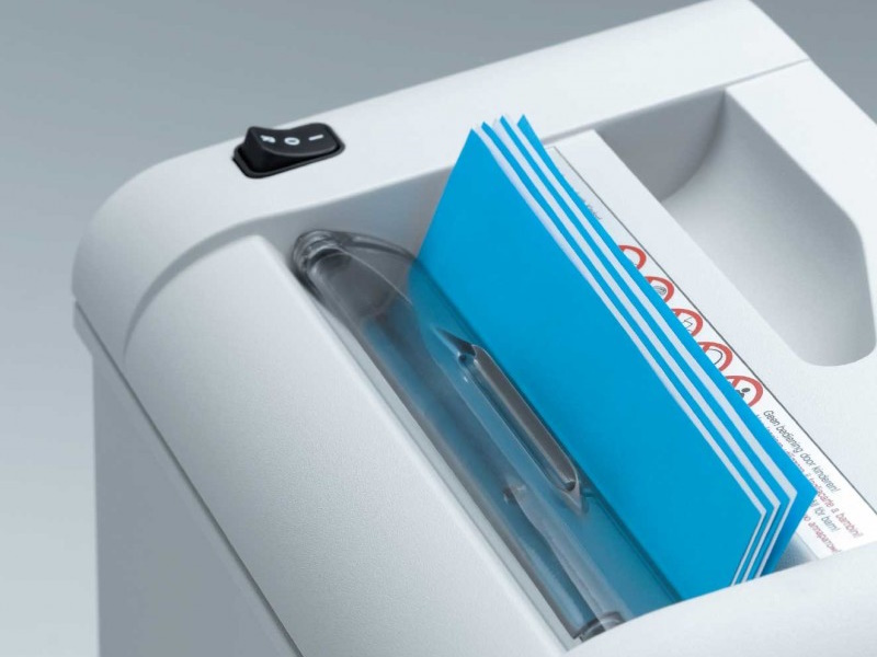 É segura, pois possui um sistema de paragem automático em caso de sobrecarga ou superaquecimento. Motor silencioso, potente e eficiente com eixos de corte à prova de clips de papel de alta qualidade em aço temperado.